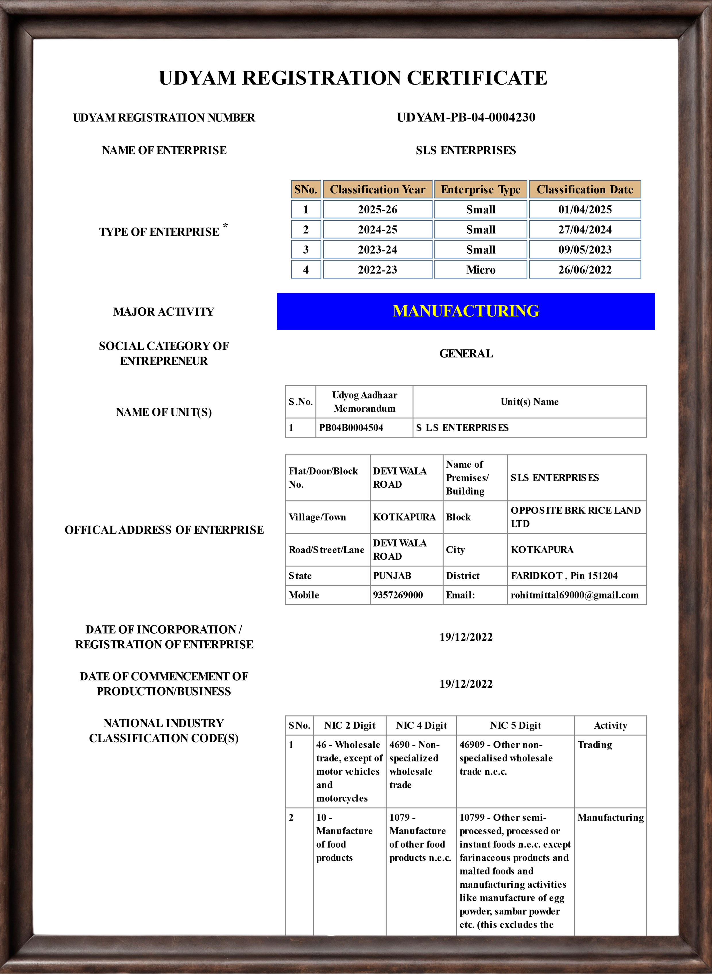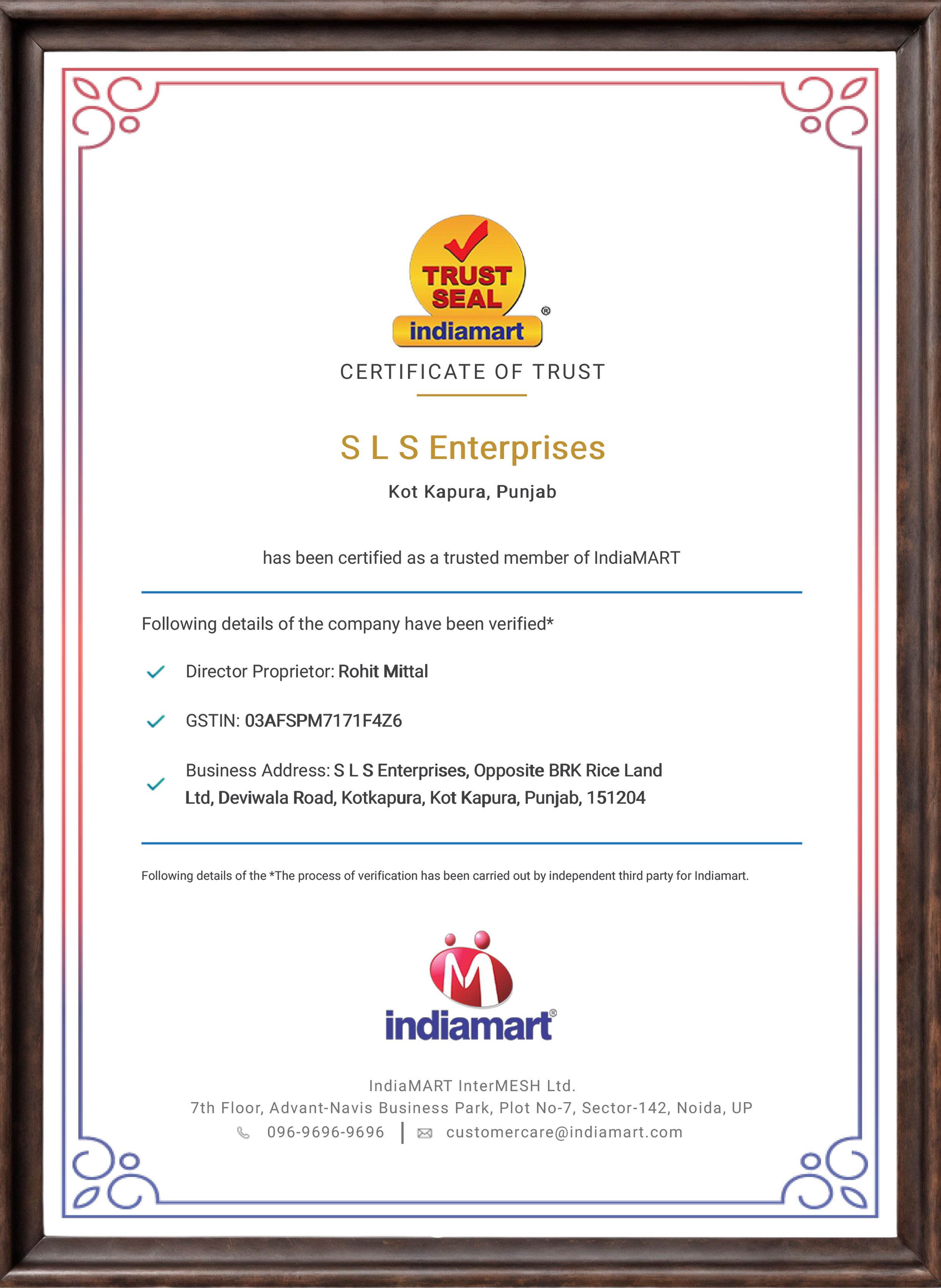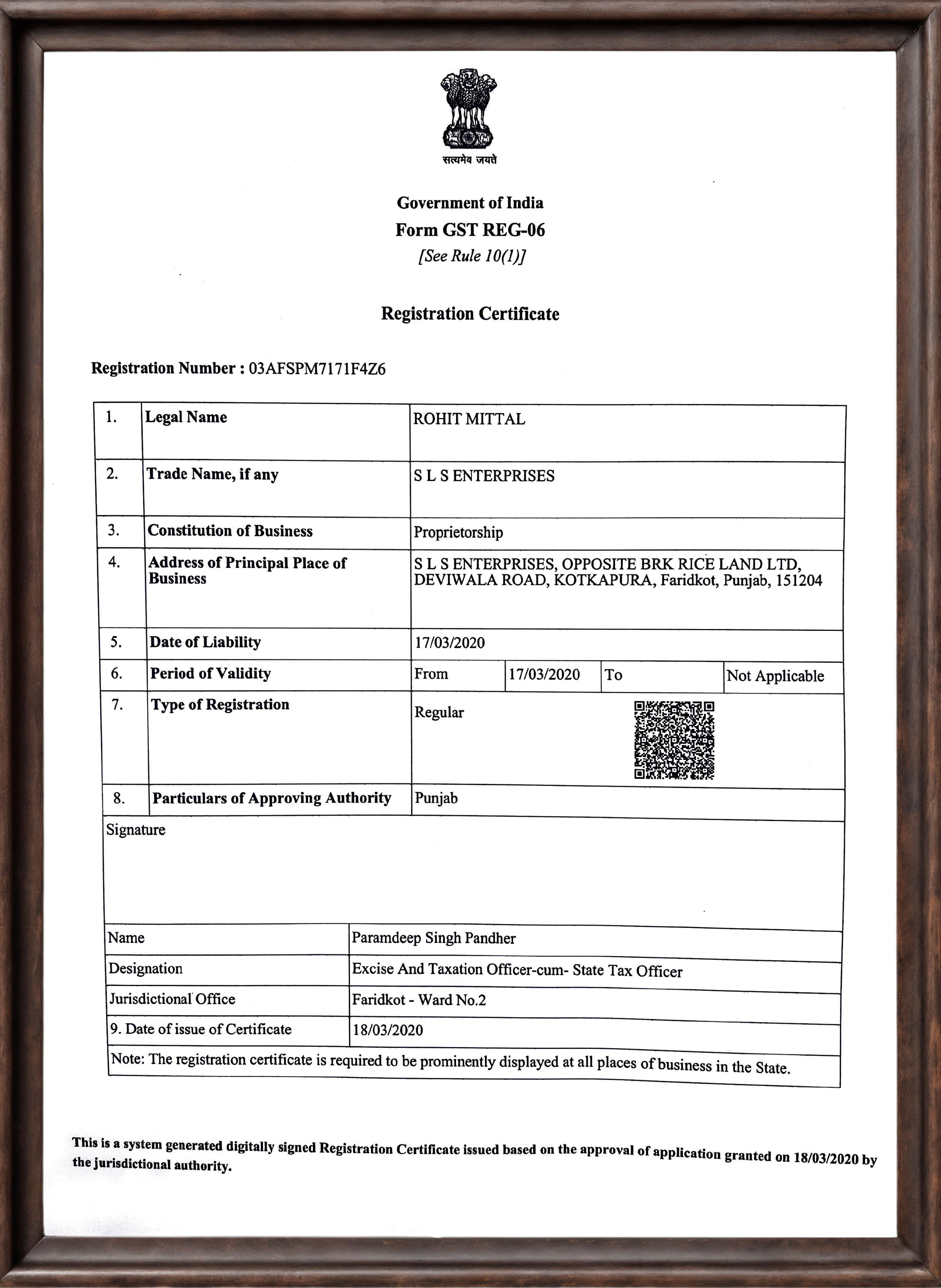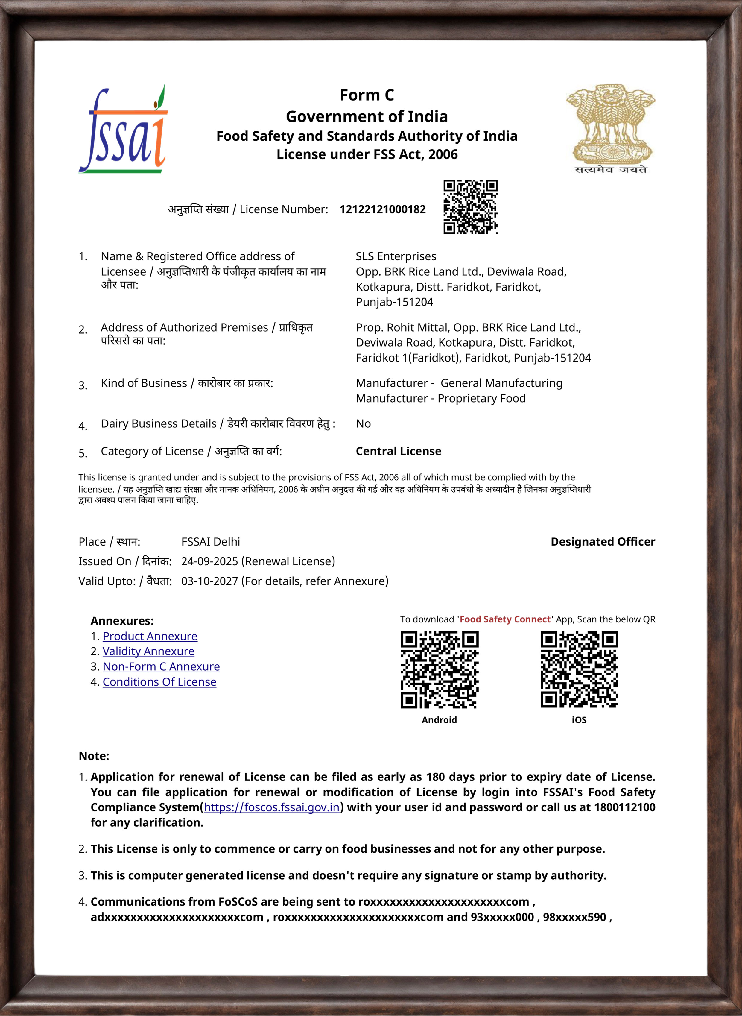 Manufacturing Unit: Opp. BRK Riceland, Main Devi Wala Road, Moga Road, Kotkapura, Punjab – 151204
